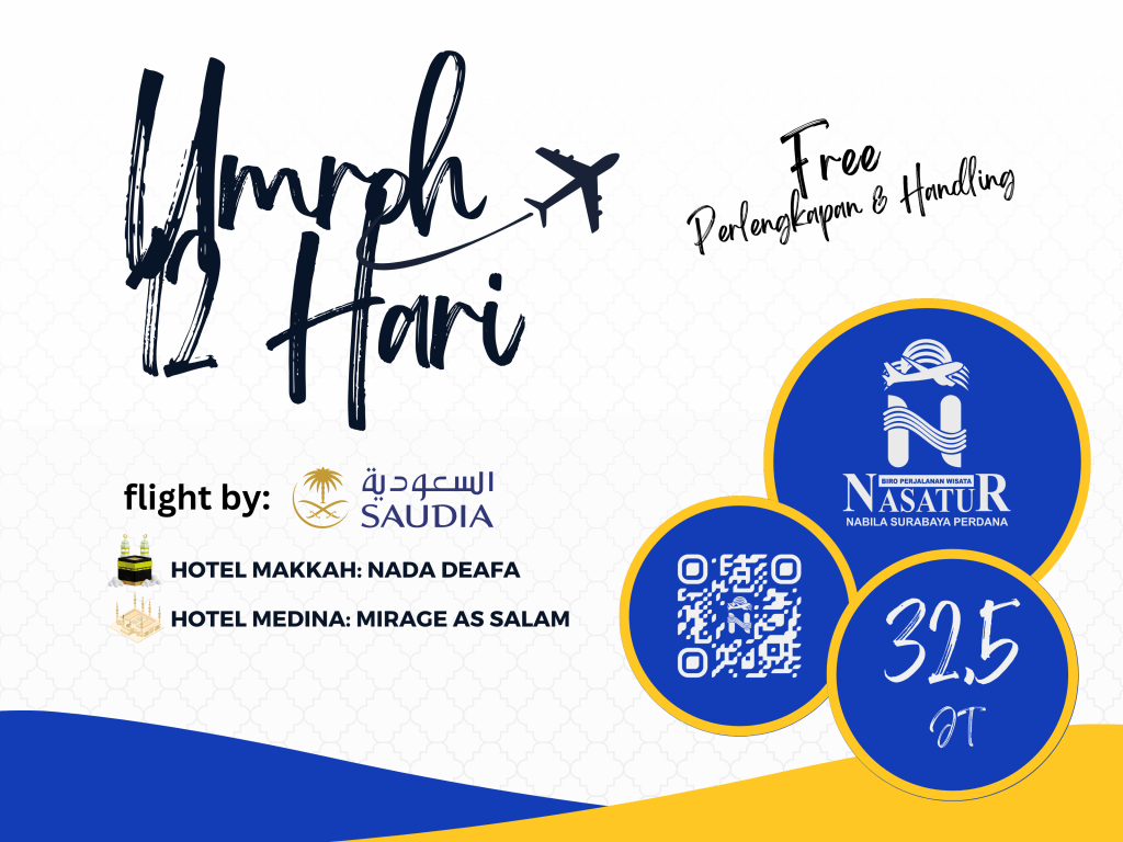 - Pendaftaran paket umrah dapat dilakukan di website resmi www.nasatur.co.id atau bisa datang langsung ke kantor PT. Nabila Surabaya Perdana.